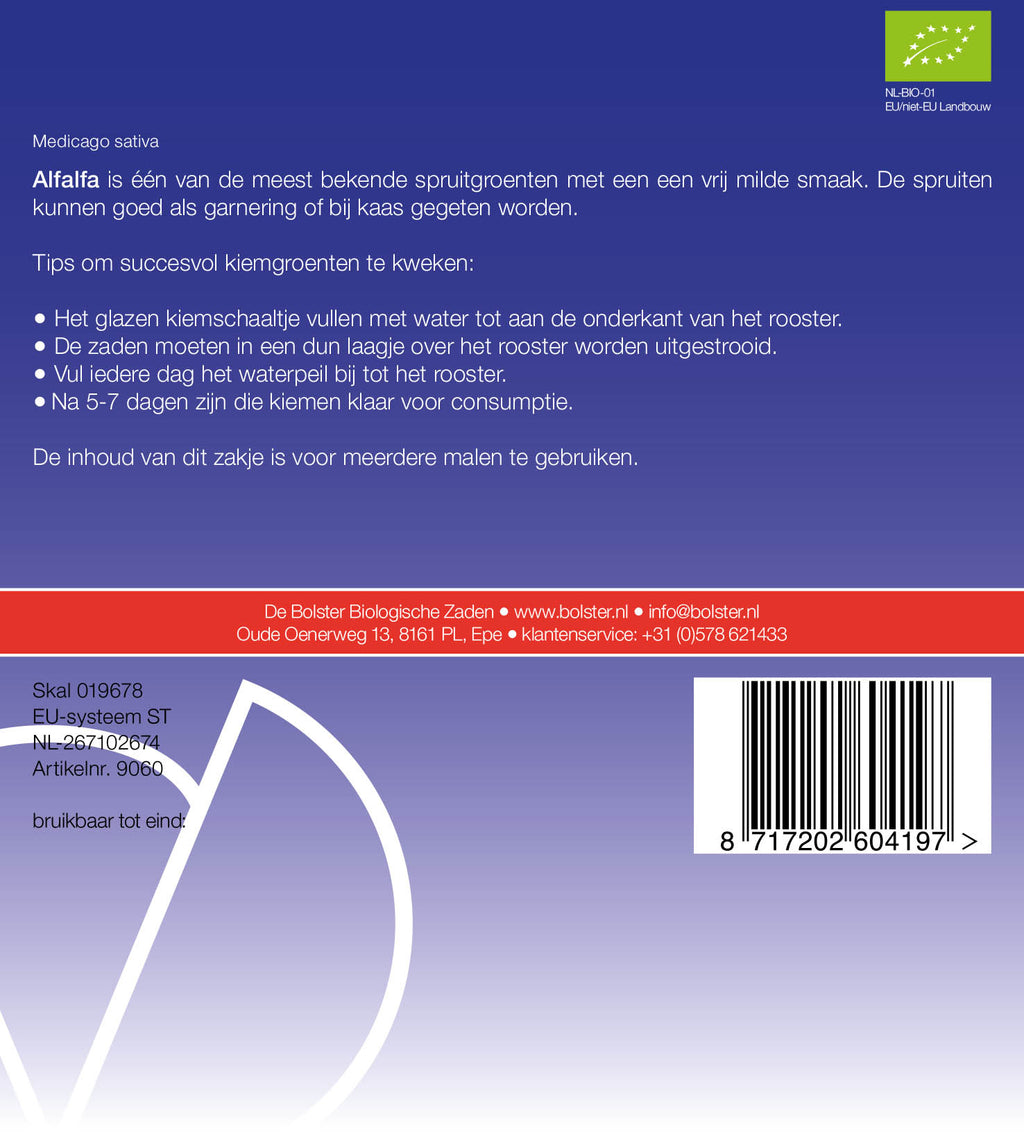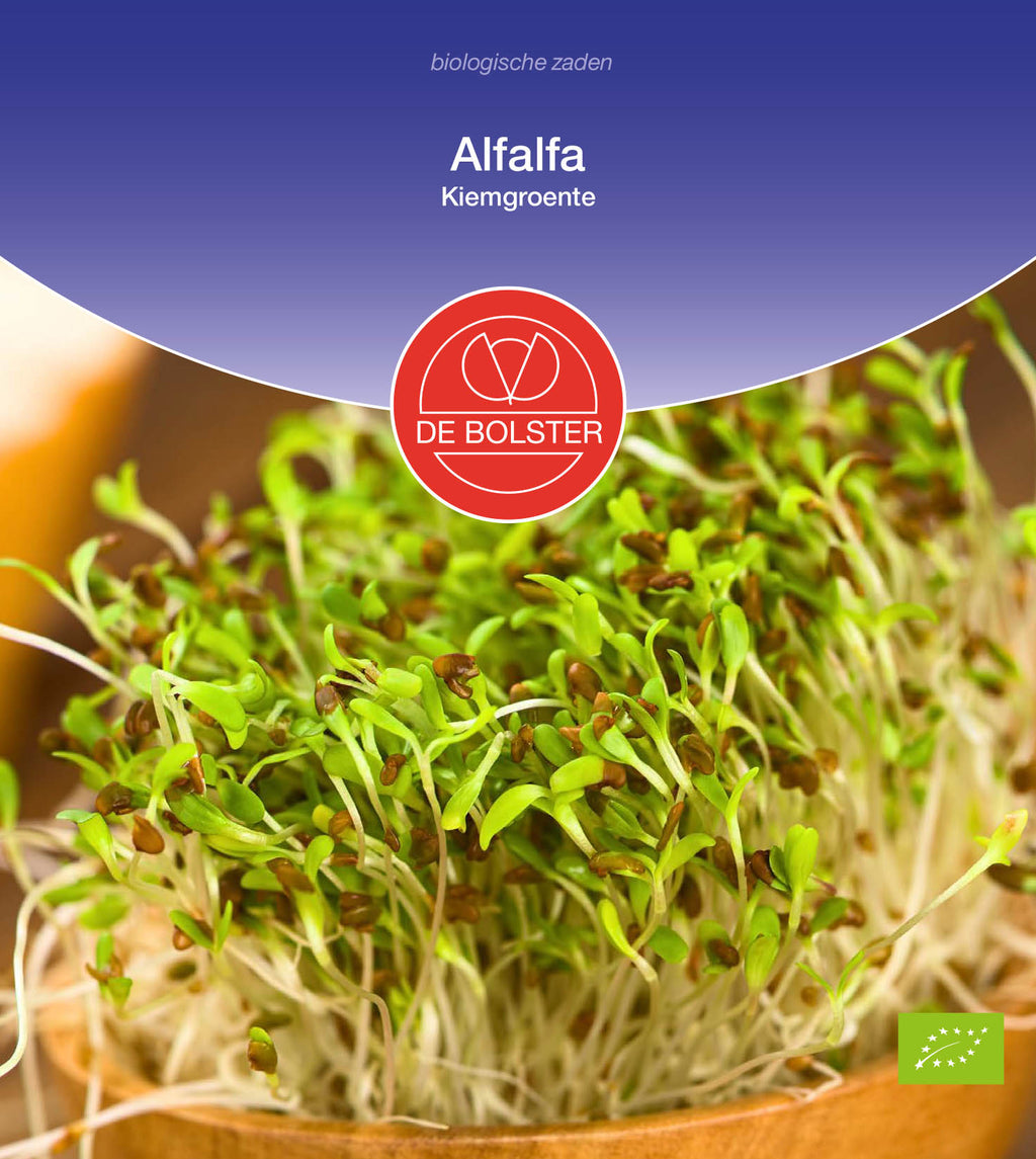 Alfalfa kiemgroente is één van de meest bekende spruitgroenten met een vrij milde smaak. De spruiten kunnen goed als garnering of bij kaas gegeten worden. Deze spruitgroente heeft een milde smaak en kan na één week kweken in een kiemschaaltje al gegeten worden. Zoals alle spruitgroentes houdt Alfalfa van een zonnige standplaats.