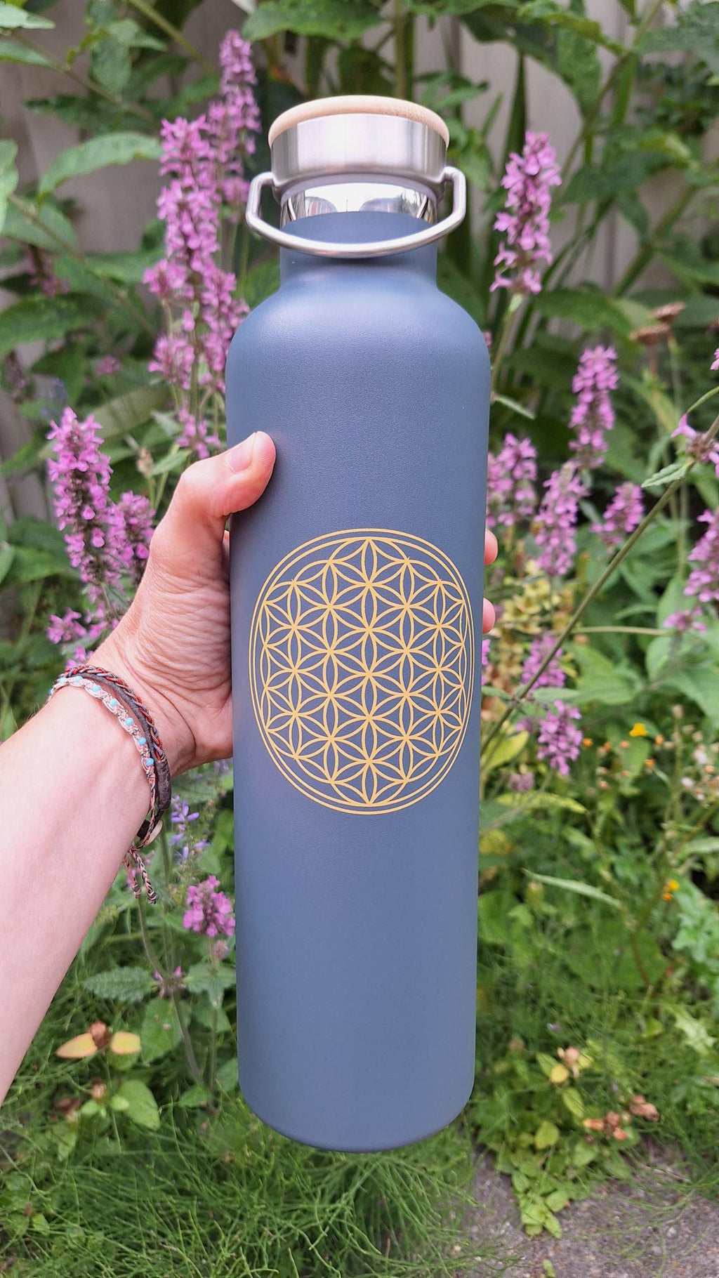 Deze elegante roestvrijstalen drinkfles met het symbool Flower of Life is jouw ideale metgezel op warme dagen of tijdens een drukke dag vol beweging. Dankzij de dubbelwandige isolatie blijft je drankje tot 12 uur warm of zelfs 24 uur koel – perfect voor ijsthee, vers water of een warme chai.