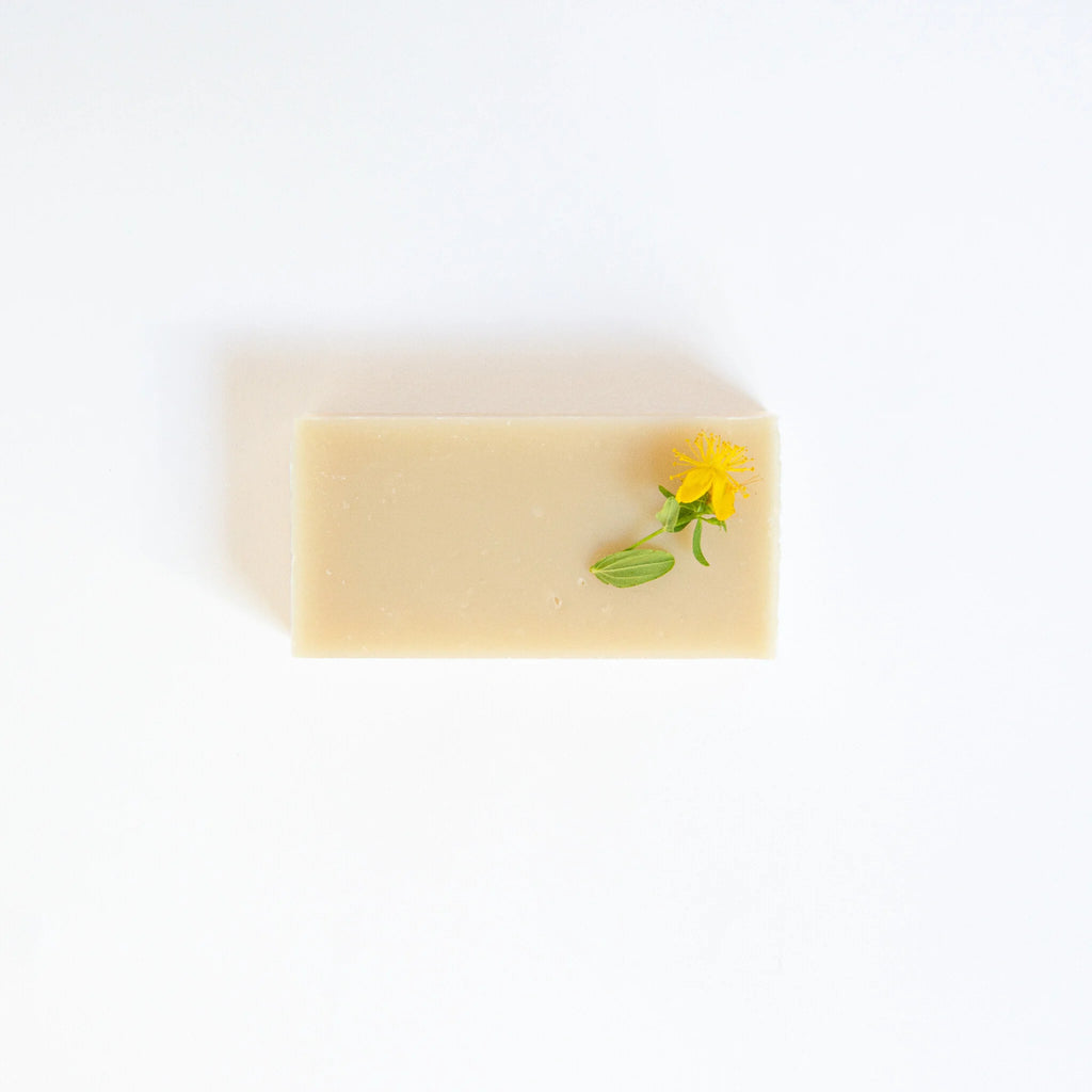 Cocos Nucifera Oil*, Helianthus Annuus Seed Oil*, Sodium Hydroxide^, Aqua, Theobroma Cacao Seed Butter*, Butyrospermum Parkii Butter*, Ricinus Communis Seed Oil*, Pinus Sylvestris Leaf Water, Pseudotsuga Menziesii Leaf Water, Arctium Lappa Root Extract*, Chamomilla Recutita Flower Extract*, Hypericum Perforatum Extract*, Thymus Vulgaris Leaf Extract*.