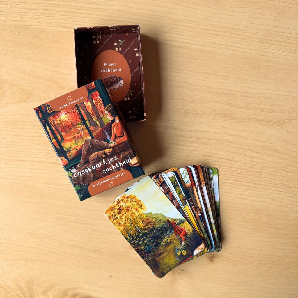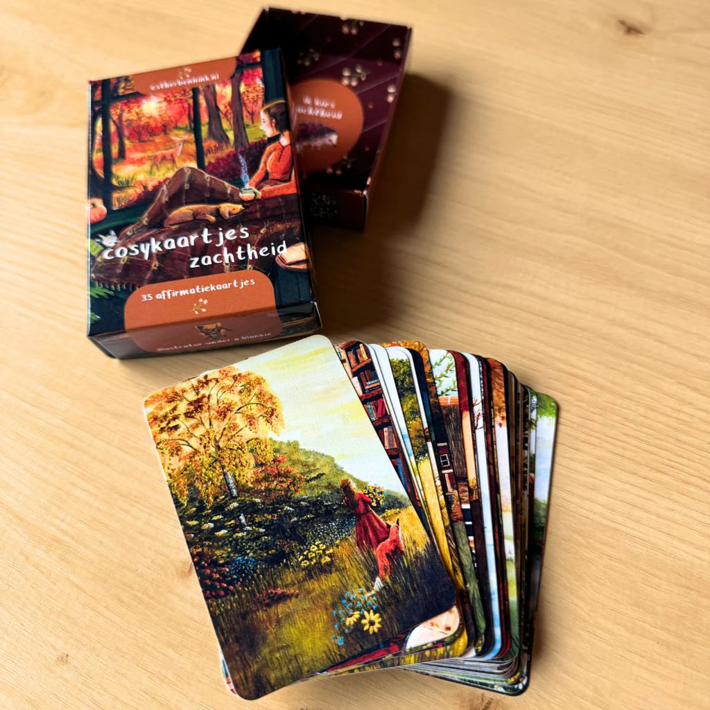Een doosje vol zachtheid én cosiness! 35 prachtig geïllustreerde kleine inspiratiekaartjes met boodschappen voor meer zachtheid in je leven.