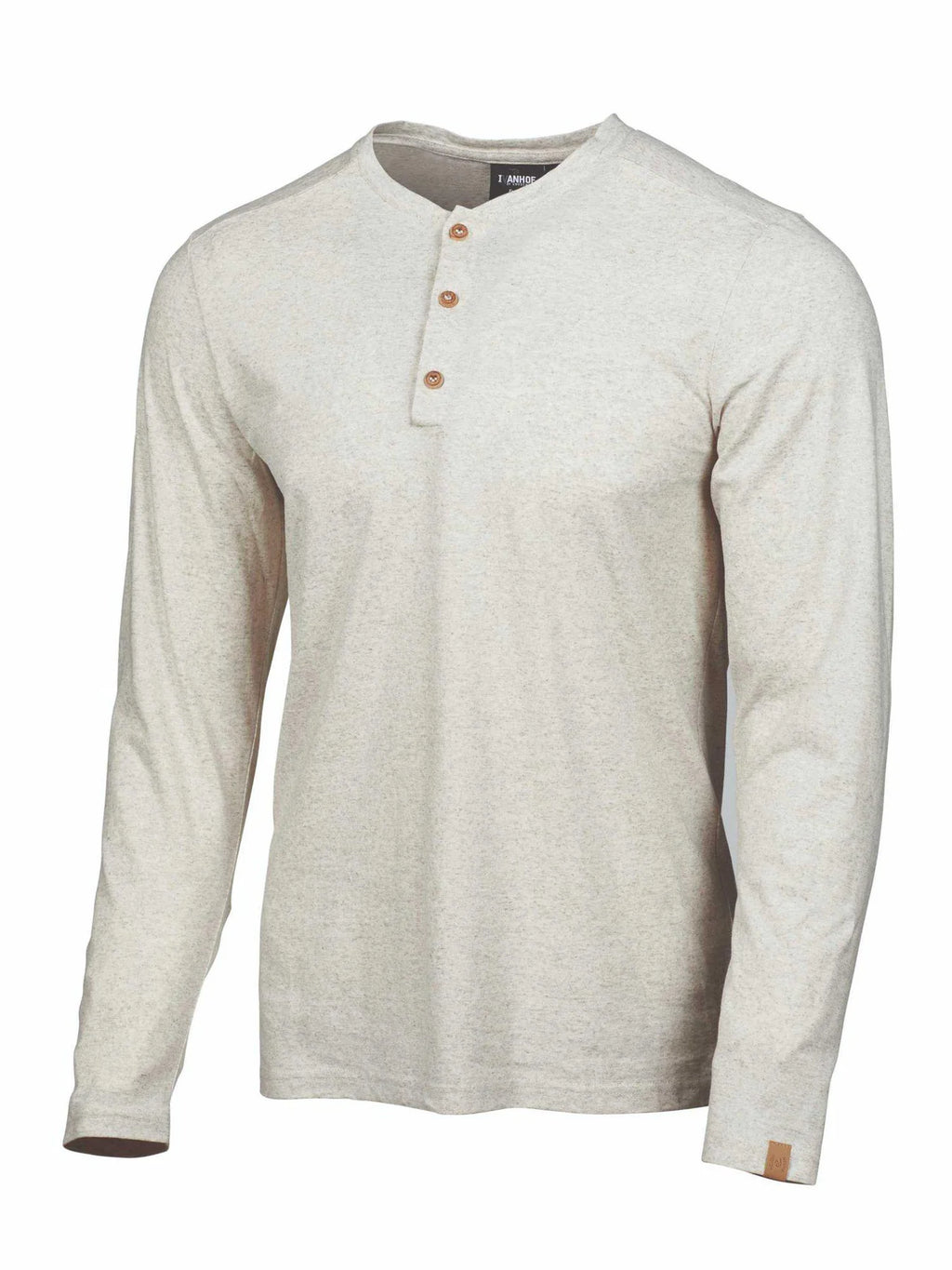 Deze longsleeve Henley is gemaakt van een comfortabele mix van biologisch katoen en Europese hennep. De stof heeft een subtiel slubeffect, wat de trui een natuurlijke en stoere uitstraling geeft. Voorzien van drie houten knopen aan de voorkant en een kleine Jacron-badge op de linkerarm voor een stijlvol accent.