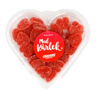 Heerlijke geleihartjes met de smaak van smultron (bosaardbei). Med kärlek betekent "met liefde". Leuk als cadeau!
