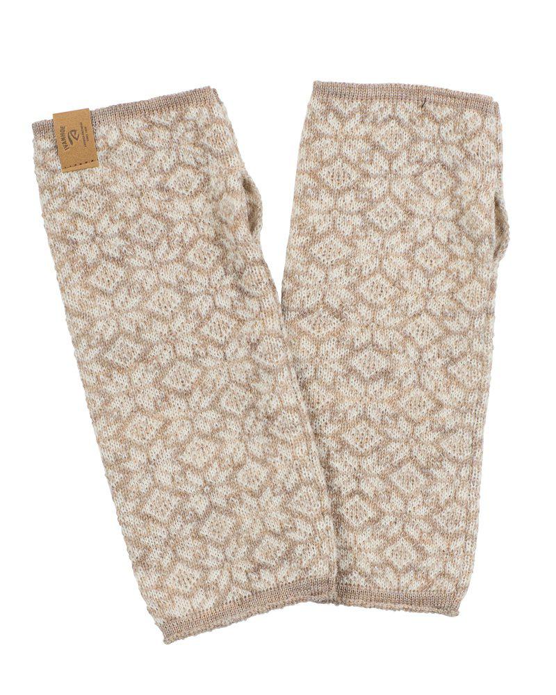 Dunne gebreide polswarmers met een prachtig jacquardpatroon. Voorzien van duimgreep en een klein logobadge in jacron.