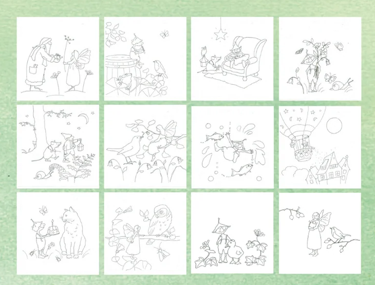 Inhoud: 24x papieren kleurplaten (2 x 12 ontwerpen)
