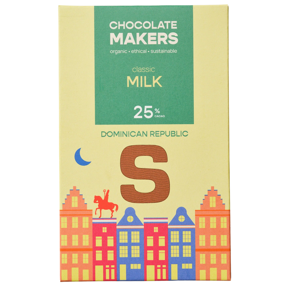 Sintletter romige melk - Sint is trots op zijn creatie. Deze romige 'Sinterletter' is ongelooflijk zacht en onweerstaanbaar! Sint heeft de bonen voor deze Sintletter persoonlijk per zeilboot vervoerd, helemaal van de Dominicaanse Republiek naar Amsterdam, emissievrij.