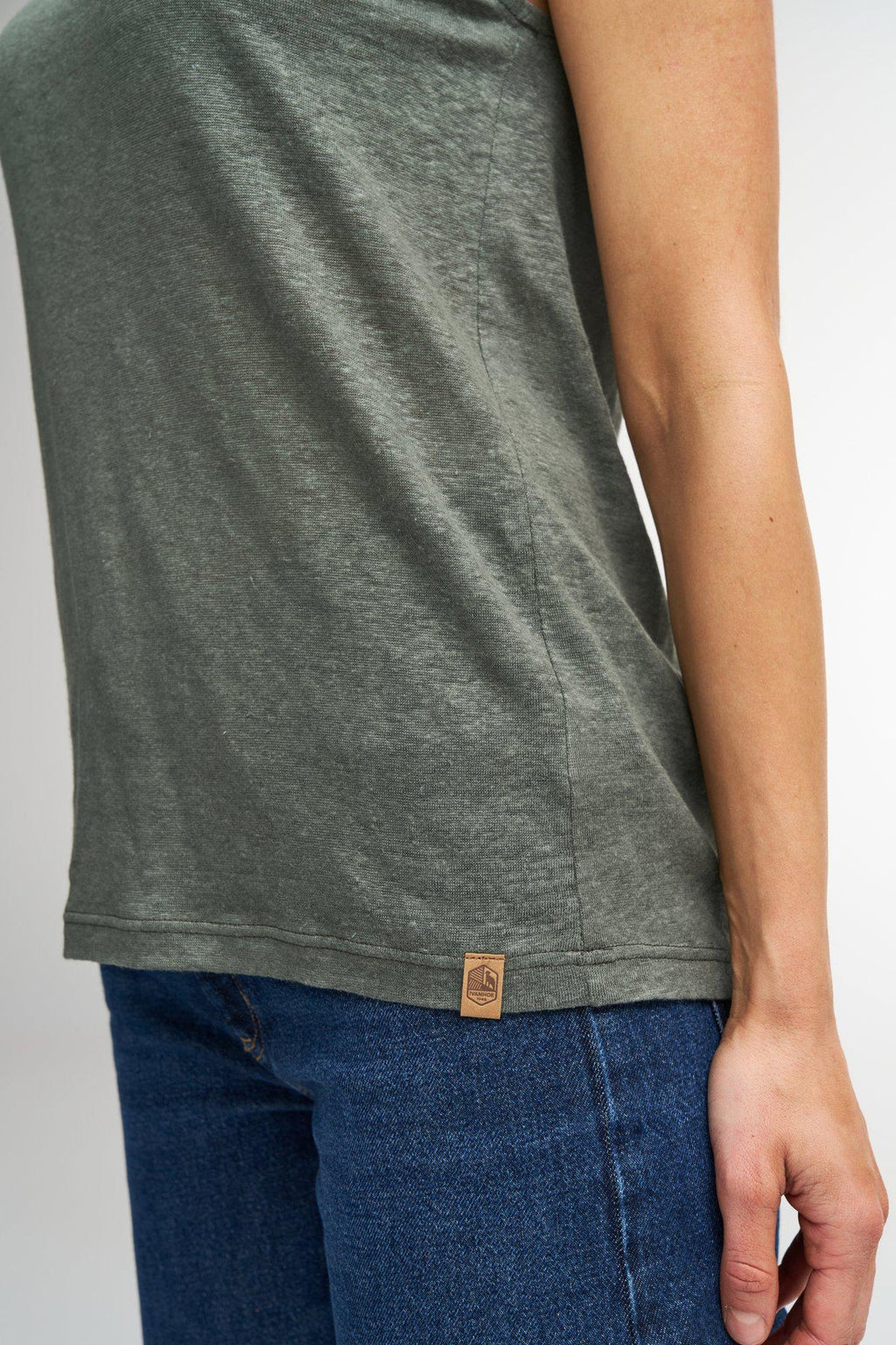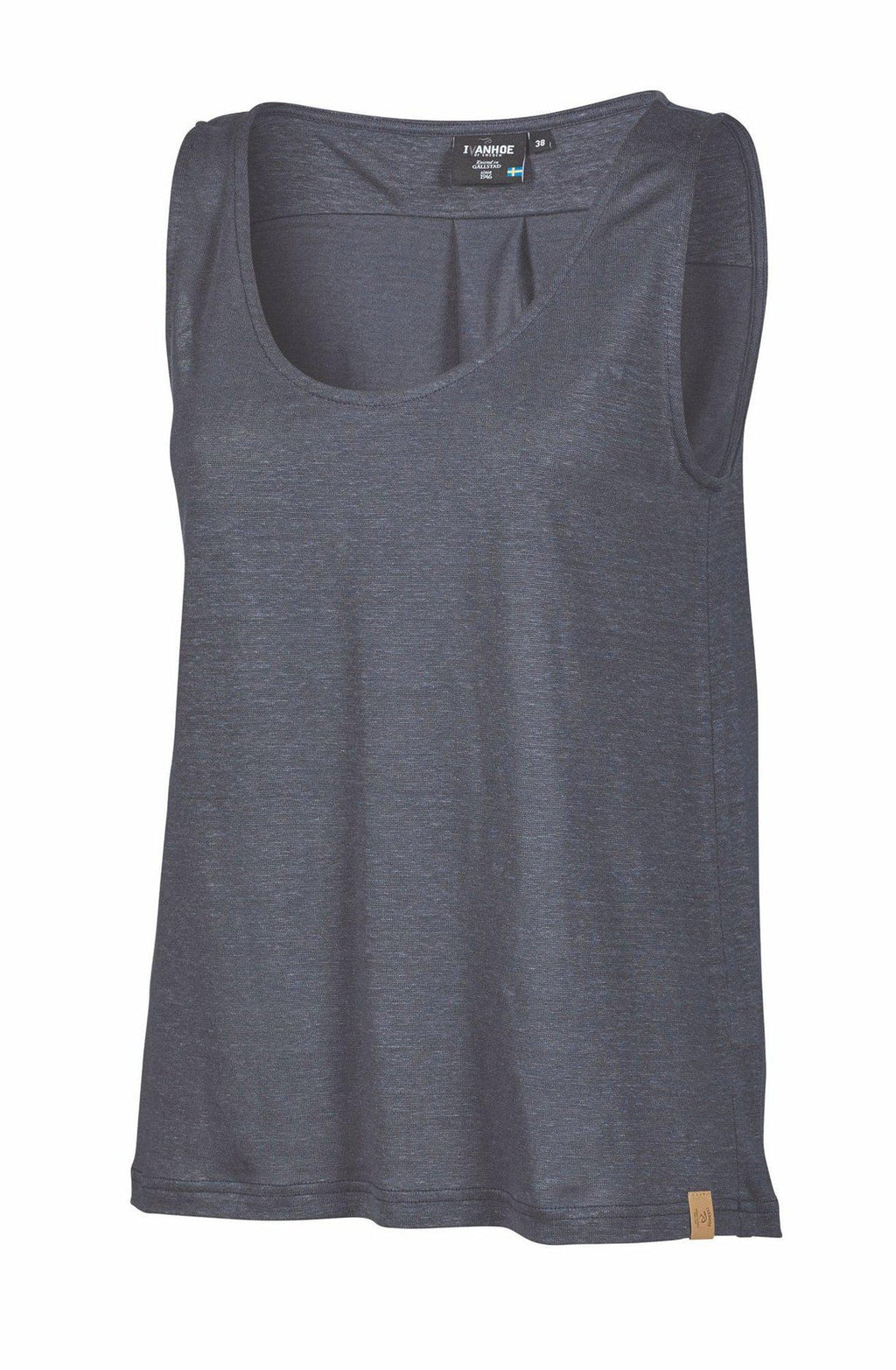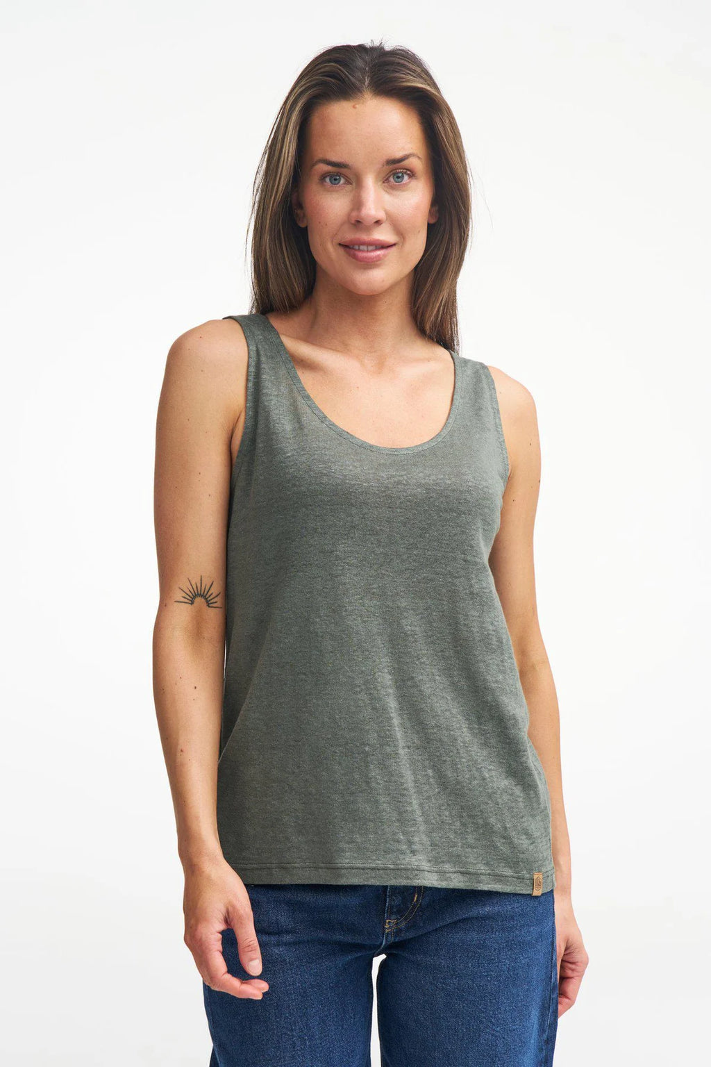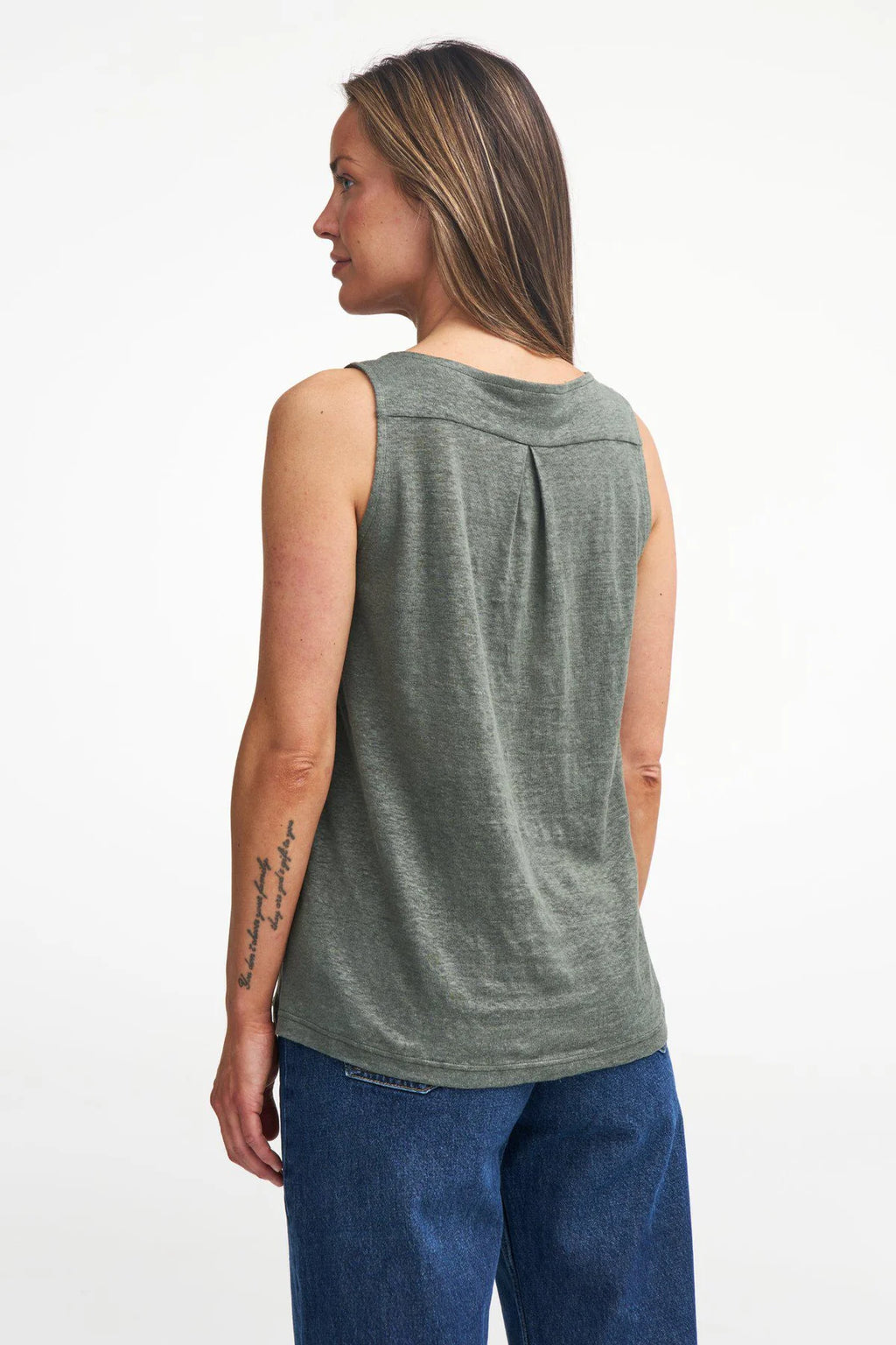 Tanktop van koele, zomerse linnenkwaliteit. Extra designeffect op de rug. Perfect om zo te dragen of onder een dun jasje of vest.