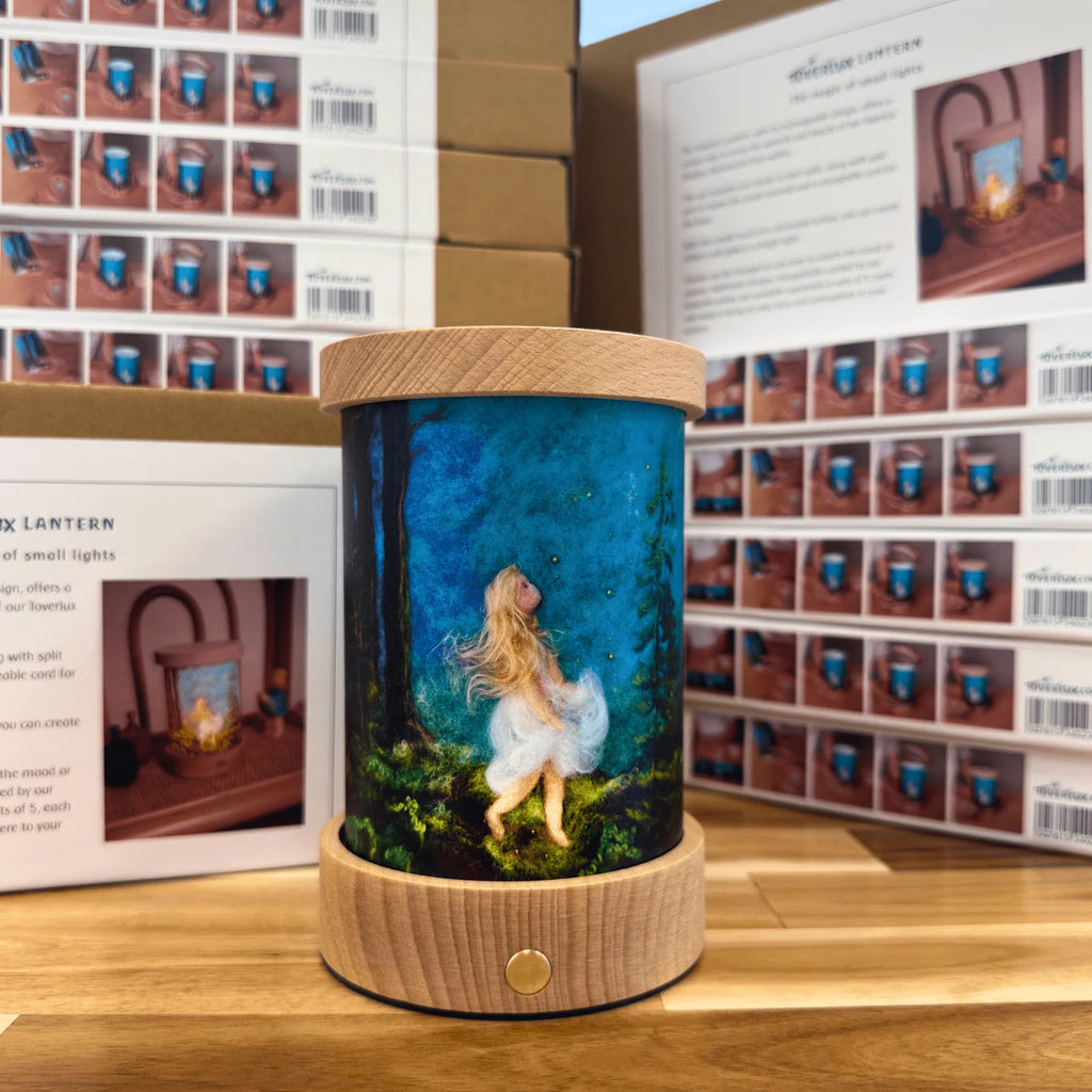 De houten lampen, raamhangers en lantaarns zijn met liefde gemaakt en perfect voor kinderkamers en de seizoenstafel, waarbij ze de essentie van Waldorf-geïnspireerde ontwerpen weergeven. De houten base met deksel verlichten de prachtige lichtkaarten.
