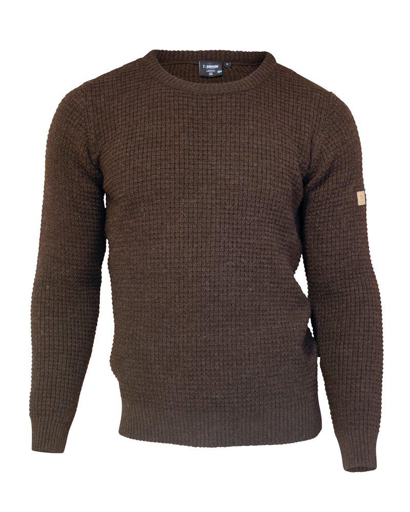 Klassieke ronde hals, gebreid van 100% zuivere ongeverfde wol. Structuurgebreid op het lijf, ribgebreide manchetten en mouwen en een ribgebreide hals. Een tijdloze klassieker waar je jarenlang plezier van zult hebben. Logobadge op de linkerbovenarm.